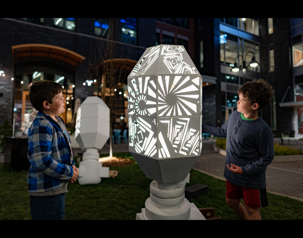 As kids, nightlights protected us from the scary things in the dark. If we woke up, we could look around our room to make sure nothing was there. ‘Sweet Dreams’ invites everyone to enter a dreamland filled with shadow and light. Three giant nightlights light up the railyard, creating a warm, cozy glow. Families and friends can gather, relax, and enjoy a simple, easygoing night out.